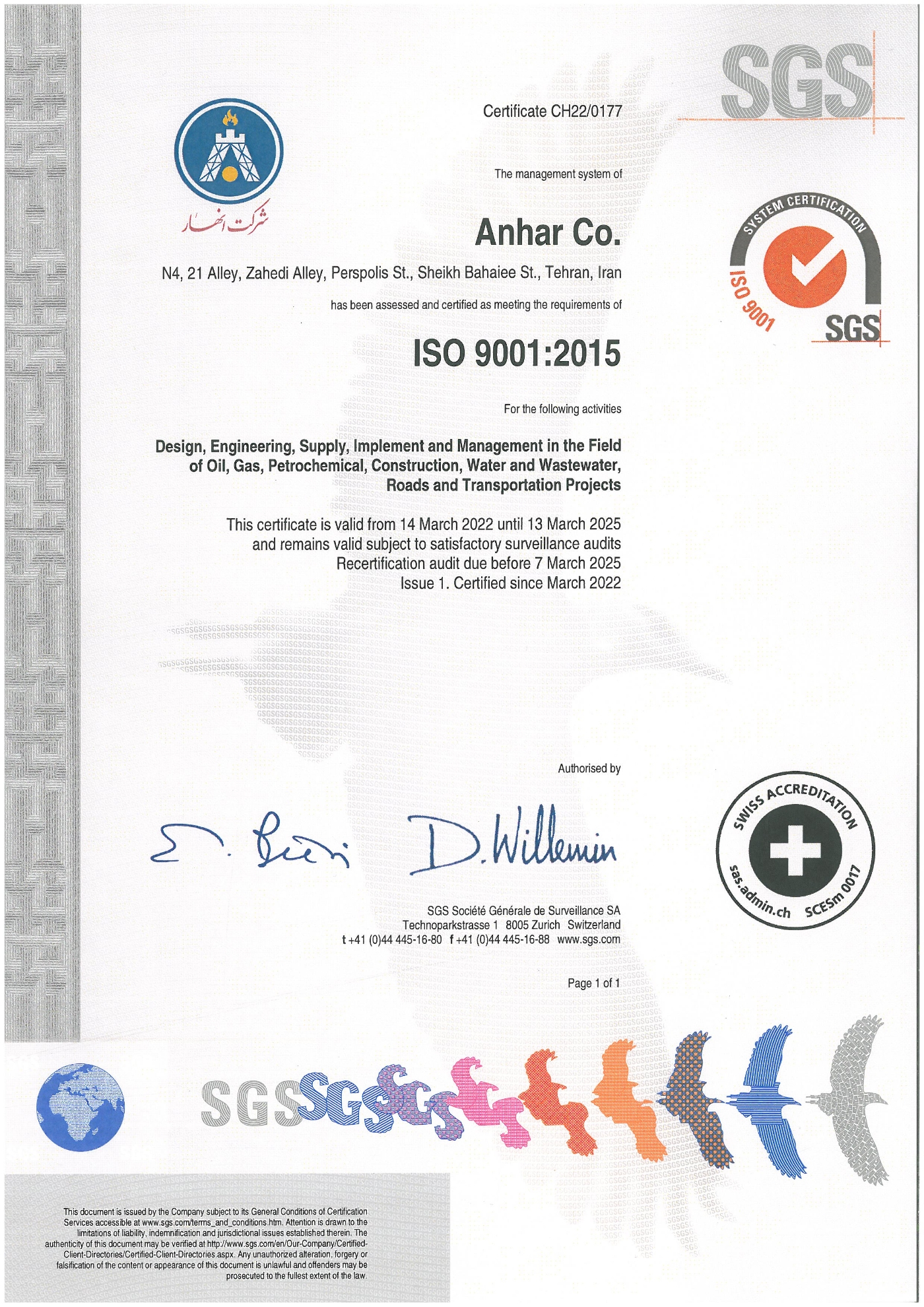 ـ شهادة نظام الإدارة المتکامل IMS من قبل شرکة SGS الدولیة