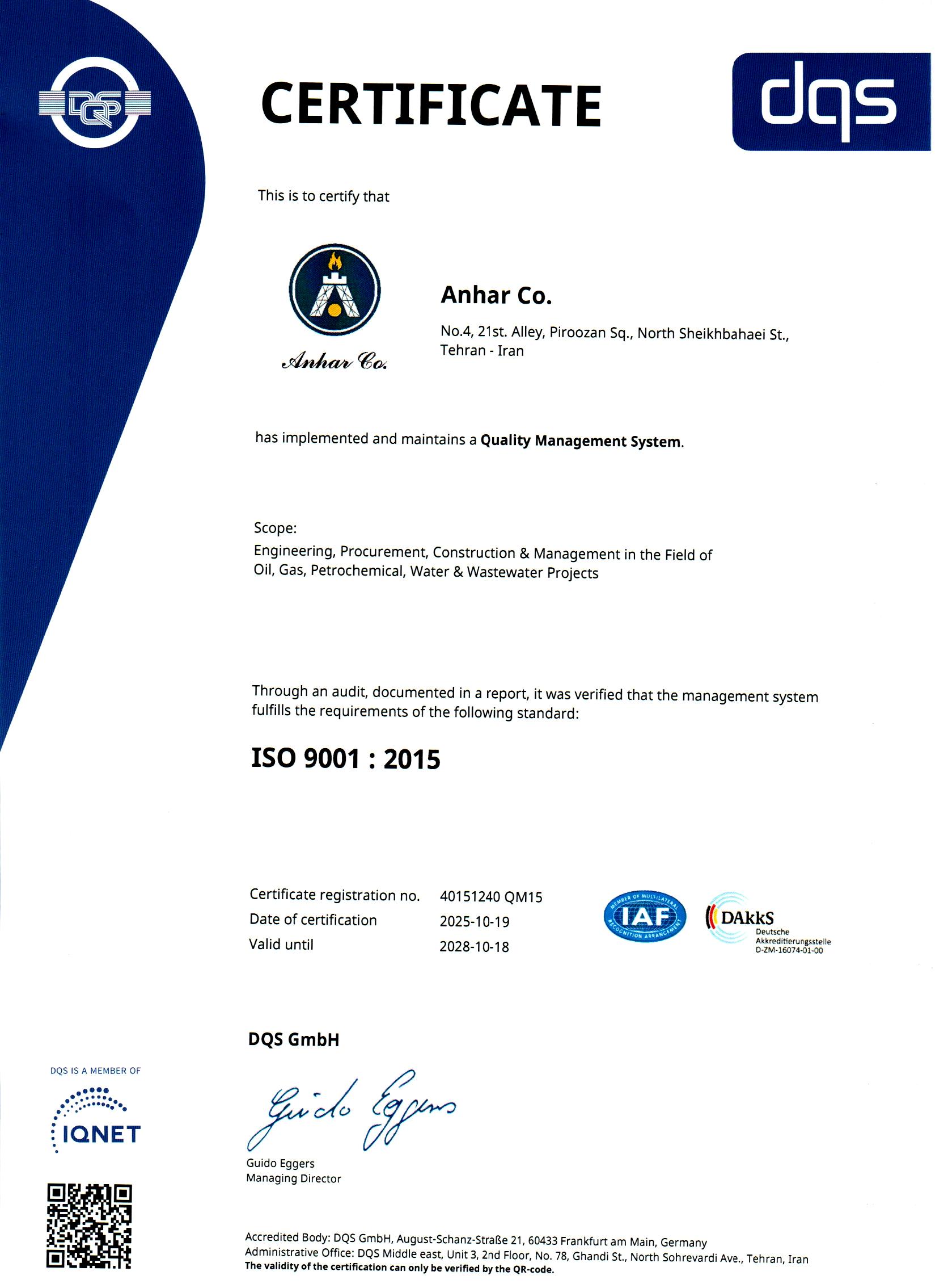 بالإضافة الی ذلك ، حصلت الشرکة علی بعض الشهادات الدولیة وعلی النحو التالي :